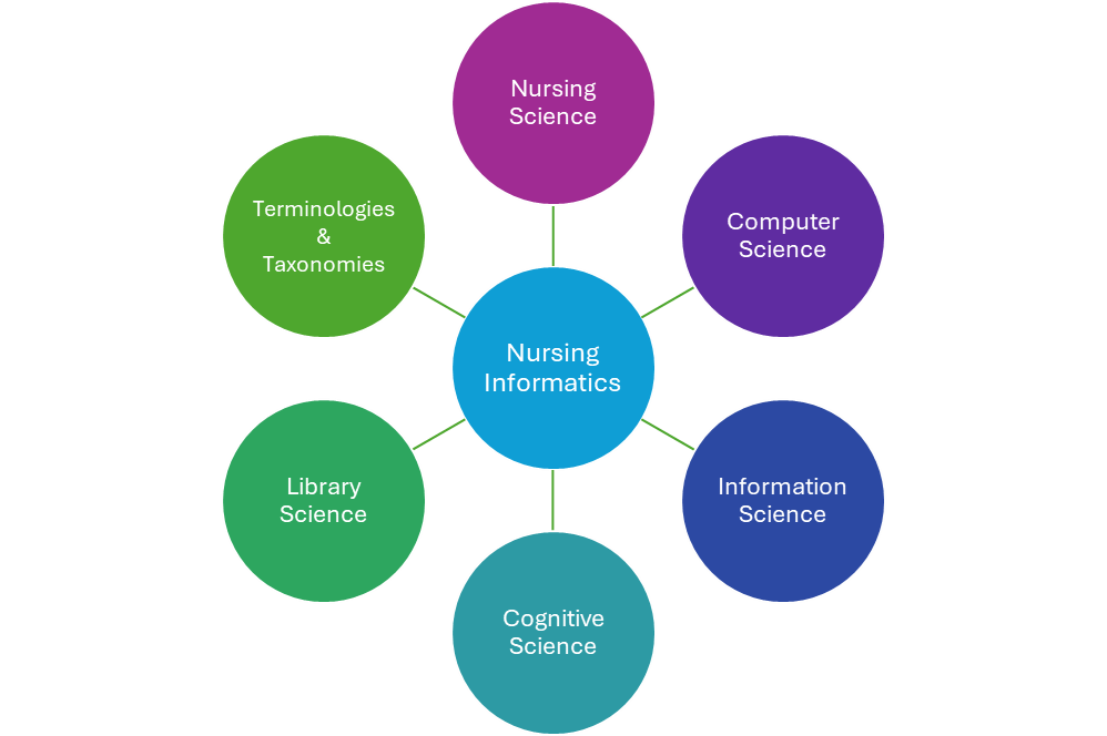 Nursing informatics as an academic discipline pulls from many other areas, including nursing science, computer science, information science, cognitive science, library science, and terminologies and taxonomies.2